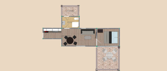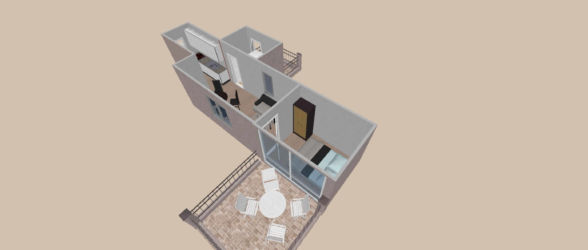 Sastoji se od spavaće sobe s bračnim krevetom, dnevnog boravka s kaučem na razvlačenje (dva kreveta), potpuno opremljene kuhinje i kupaonice.